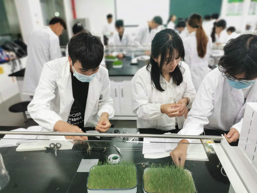 第一批“实践课程创新计划”立项课程《植物生理生化实验》展开。丰胜求老师首先以学生成长过程中“逆商”的重要性为指引,从植物生理学概念出发,讲述环境与植物的关系,并引出本次实验的目的:在逆境的条件下,了解植物如何应对逆境带来的影响,学习并掌握快速鉴定植物抗逆性的方法,理解细胞膜的完整性与植物抗逆性之间的关系。课程考核流程分为提前预习、雨课堂检测预习情况、两人为小组合作实验、试验结束当场完成实验报告四个环节。整个课堂中,学生们学习热情高涨,井然有序地开展实验动手操作,主动和现场老师交流实验内容,同时丰胜求老师也记录了同学们实验的细节以便在实验结束后及时给予反馈。
