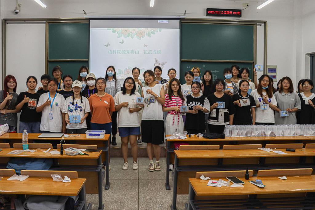“毓秀狮山——花茧成蝶”手工制作特别活动在四教C311成功举办。来自5个学院的28名同学共同参与到滴胶干花和蝴蝶标本的制作当中。活动由学院女生部张岩萌主持。