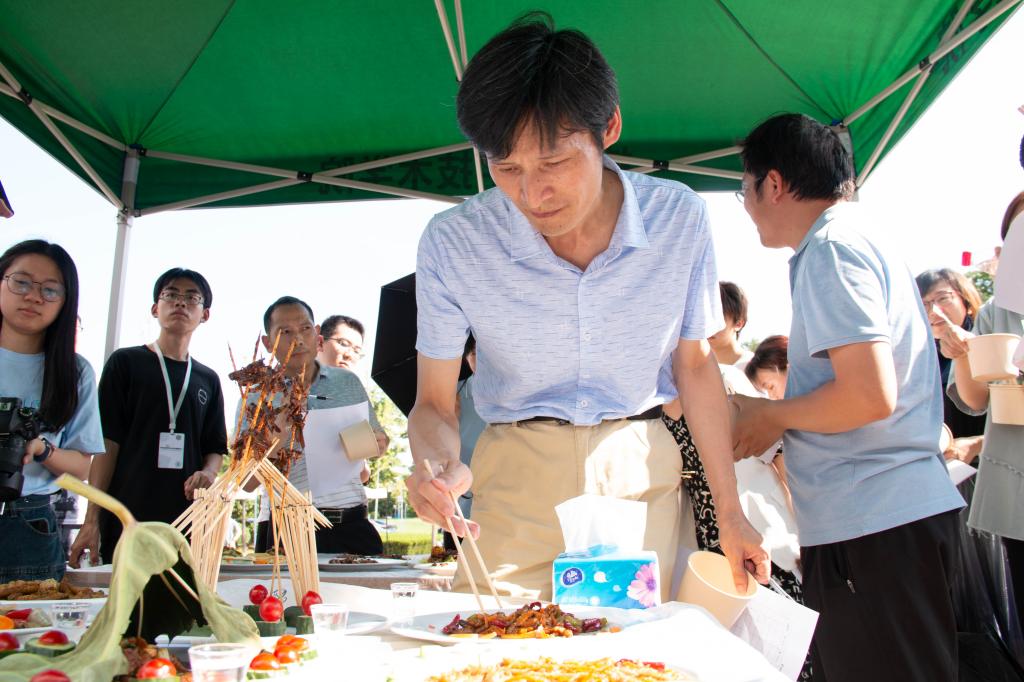 活动伊始,昆虫宴指导老师周兴苗副教授为本次植保文化节致开幕词,他介绍道:“昆虫具有丰富的蛋白质、维生素和微量元素,有很高的营养价值。”通过周兴苗的介绍,参赛同学了解到昆虫的食用价值和独特风味,更加积极地参与到大众品尝环节之中。昆虫宴比赛是植保文化节的主要内容之一,比赛要求十组参赛选手在一个半小时内为现场观众制作昆虫美食,并由现场观众品尝和投票,再由专业老师针对制作过程、菜品创意等进行打分,综合评分从而选出最佳菜品。