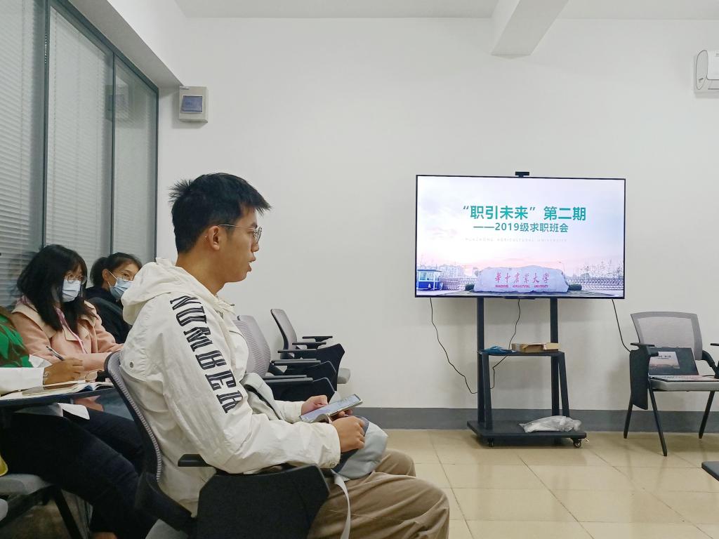 为解决求职过程中同学们遇到的各种问题,10月5日至6日,“职引未来”系列活动第二期:求职班会于荟七二楼开展,本次班会分为两期,我院辅导员明淇与19级50余名同学开展座谈,师生畅谈求职经验。