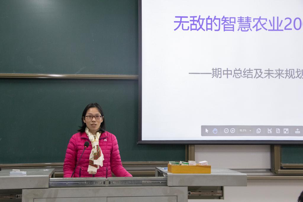 班主任朱芬进行期中总结,她从学习能力、人际交往、社会实践、国际交流与专业能力等多个方面向同学们提出了自己的建议。她认为大学要学会对未来的规划,早立志,立长志。“不仅仅是读大学,还要借助各种途径学会了解外界,更要学会品华农、品专业、品自己。”