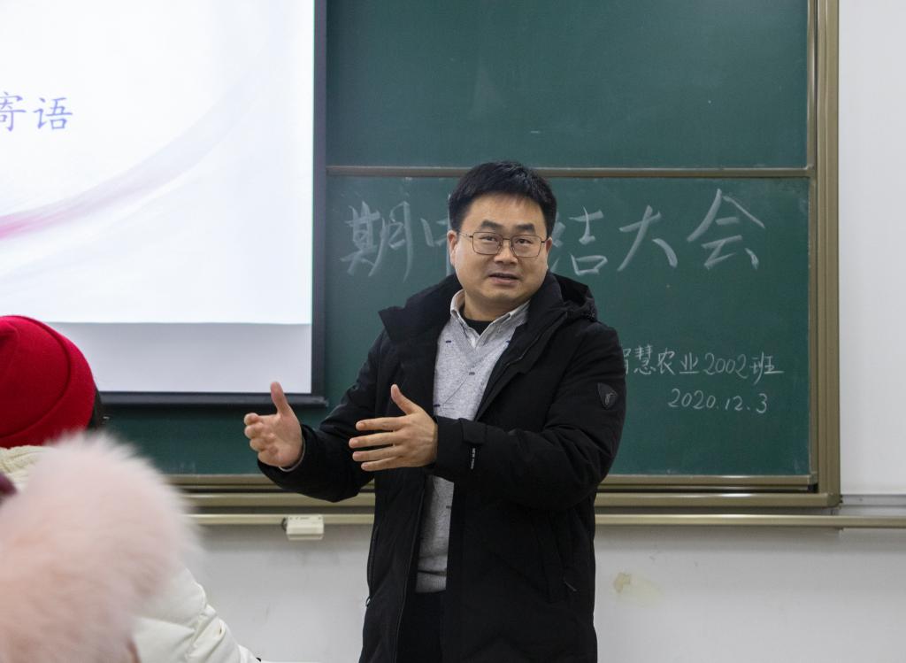 班会最后,党委书记周雄寄语。他对智慧农业2002班的优良表现提出了表扬,认可他们在学习互相帮助。他指出,每个人都应培养兴趣爱好,树立远大理想并尽全力去实现,“同学们要学会找到自己的定位,清楚自己在大学要做什么。大学是可以让同学们发现缺点并去改变成长的一个阶段。”