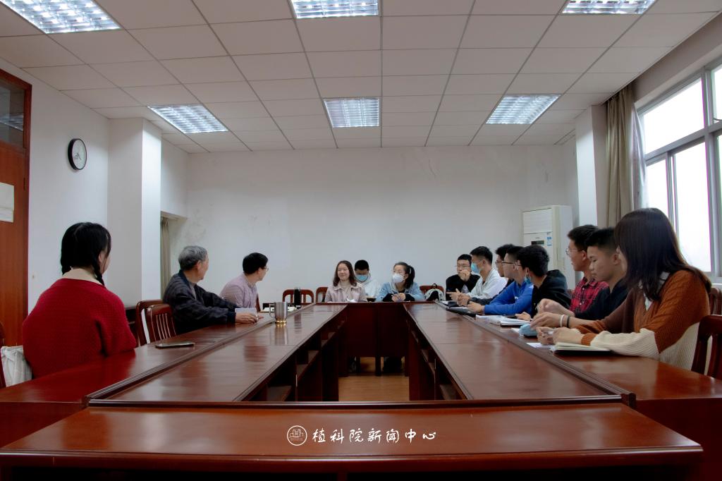 在谢甲涛教授办公室,围坐一圈的同学们眼里透露出他们对植物病理知识的渴求。谢甲涛教授介绍了植物病理与病原微生物学研究室研究方向和前沿科学问题。周兴苗副教授则邀约同学们一起探讨了“适应大学与学会学习”。