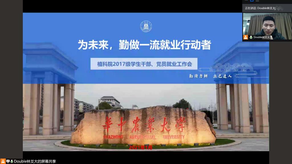 1月5日晚,我院2017级辅导员熊攀攀在腾讯会议召开题为“为未来,勤做一流就业行动者”的就业工作会,2017级历届学生干部和全体党员参加。