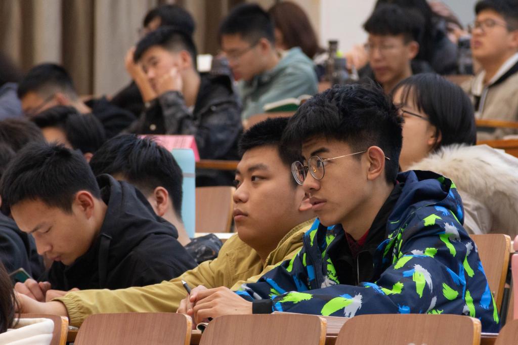 贾浩洋以一张历次团代会的编年表为引,开始了他对团的十八大精神的阐述。他首先带同学们回顾了历史进程中的多位中国青年,从大家耳熟能详的毛泽东、鲁迅、雷锋,到贴近同学们生活的崔译文,这些不同时代的青年人身上的精神始终一脉相承。紧接着,他从科技、互联、区域、生态等方面向同学们阐释了“新时代”的含义,并给作为“新青年”的同学们明确了目前的形势与任务、问题与挑战,以及团员们应有的站位与初心。随后,他鼓励同学们要“青春建功新时代”,呼吁同学们积极投身创新创业大潮,增强文化创造活力,参与共建共治共享。“青春是用来奋斗的,”他在定义“新时代、新使命、新担当”时如是强调,“同学们要切忌享乐主义,在平时练就真本领,并给自己定下目标去努力奋斗。”