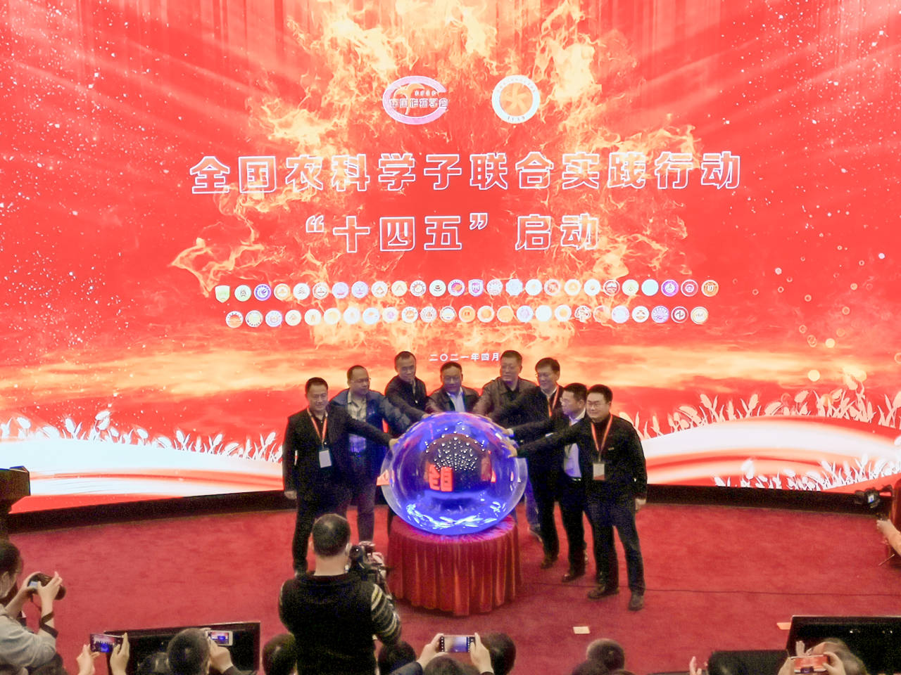 随后,举行了全国农科学子联合实践行动《不忘初心 砥砺前行—走进乡土乡村 助力精准扶贫》系列丛书第五本《阡陌圆梦》的首发仪式。最后,全国涉农院校七大片区代表共同按下象征联合实践行动“十四五”正式启动的同心球。