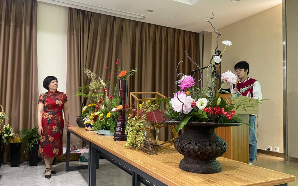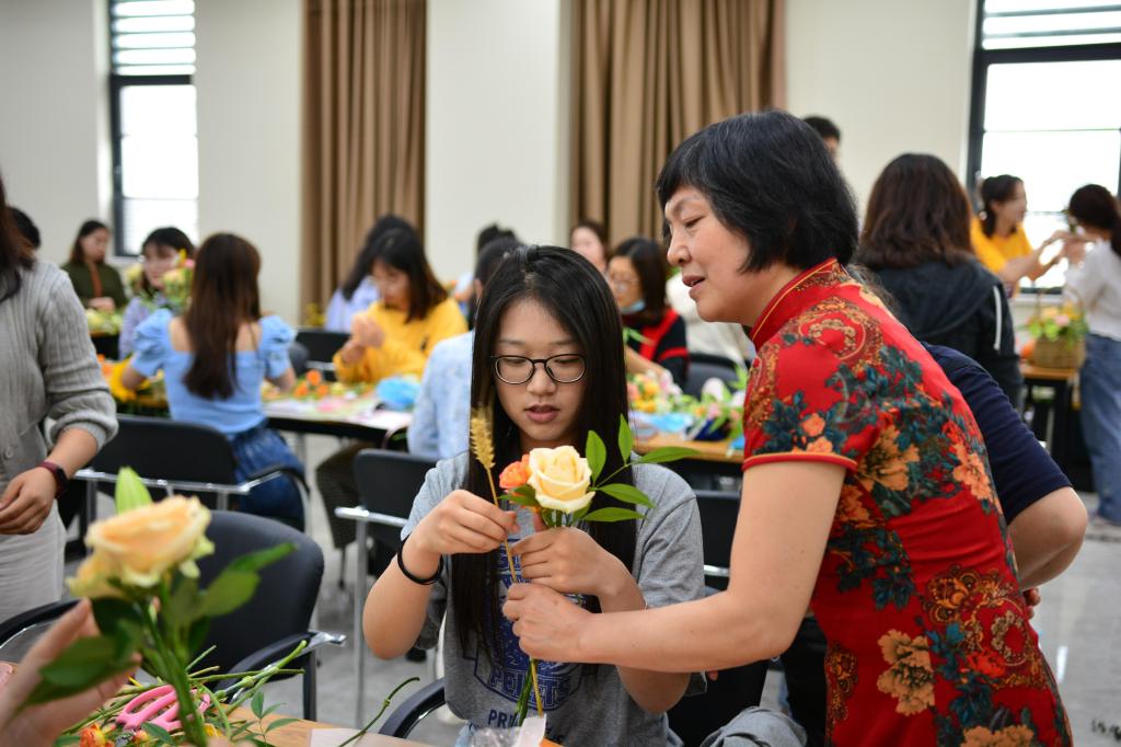 园艺林学学院王彩云教授受邀以“插花艺术鉴赏与实践”为主题作了分享,并组织了现场插花实践活动。