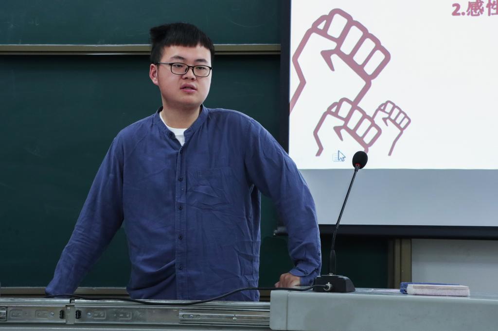 活动伊始,林鑫隆向大家分享了读完《实践论》后的感受。他表示,在谈实践论之前,要先了解什么是认识,什么又是实践。“认识就是我们对一个事物主观的看法,对学生干部而言,就是对一项工作如何展开所进行思考而产生的方案。实践,就是我们根据主观的看法去从事某一项活动。”林鑫隆分享到。他接着聊到了实践和认识的关系,“我们的认识是一步步发展的,从表面到深入,即从感性到理性。”在林鑫隆看来,《实践论》讲的是一种认识论,即指如何认识事物,并在实践中改进认识最终得到真理的过程。