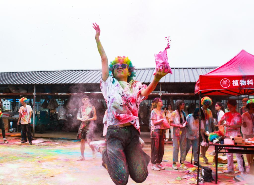 到达终点后,主办方为所有参与者发放了彩虹粉,供大家肆意玩耍。大家都肆无忌惮地喷洒着手中的彩虹粉,一时间,玉米基地变成了一个大型欢乐海洋,彩色的玉米粉描绘出一道道彩虹,明亮了整个天空。举办本次彩虹跑的目的,负责人杨宇杰这样说,彩虹跑活动就是一个集健身娱乐为一体的活动,我们已经策划了很久,充分利用华农可食用的无害玉米粉制成彩虹粉,让大家体会不一样的运动,彰显华农的特色,跑出华农未来的无限可能!