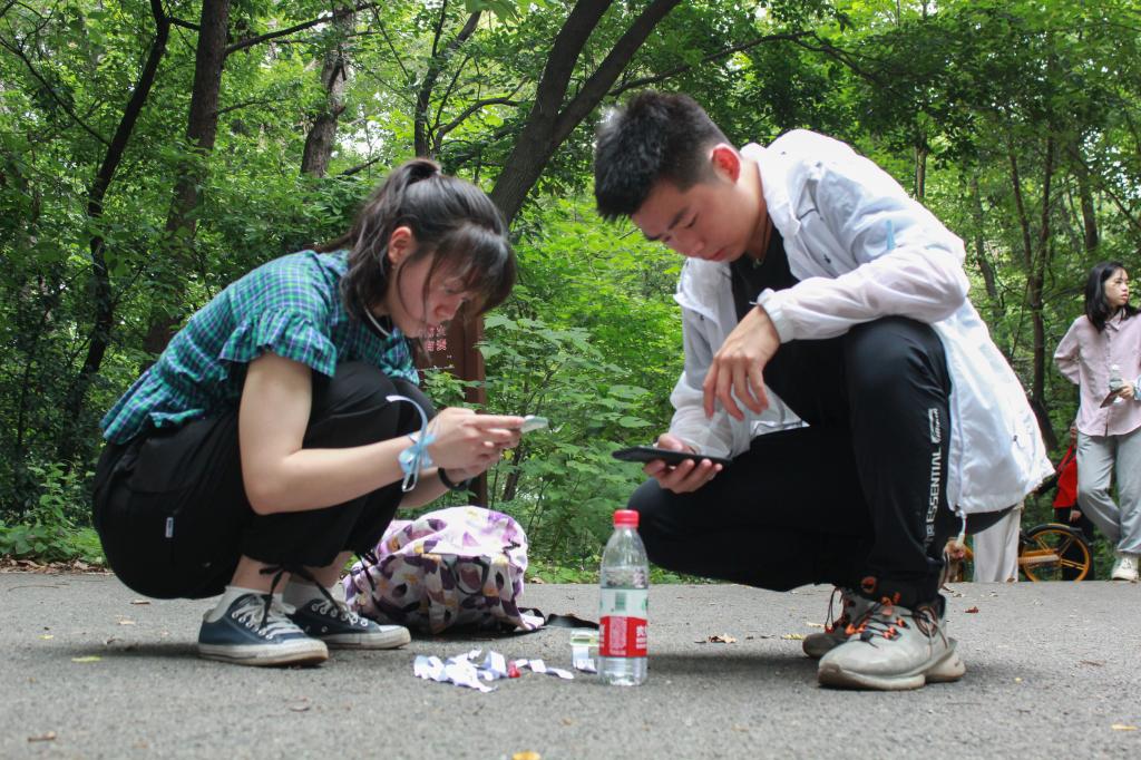 比赛开始后,十余支队伍立即出发,参赛人员争分夺秒,快速仔细地找题目。有的队伍根据队员情况对三条路线进行了细致分配,而有的队伍决定共同挑战每一条路线。在搜寻过程中,选手们仔细地观察路边每一处可疑的地方,树叶下、树干上、椅子背后甚至树皮之间都可能存在纸条。随后,搜寻完毕的小队进入答题阶段,大家分工明确,争分夺秒,尽可能在规定时间内完成更多的题目。