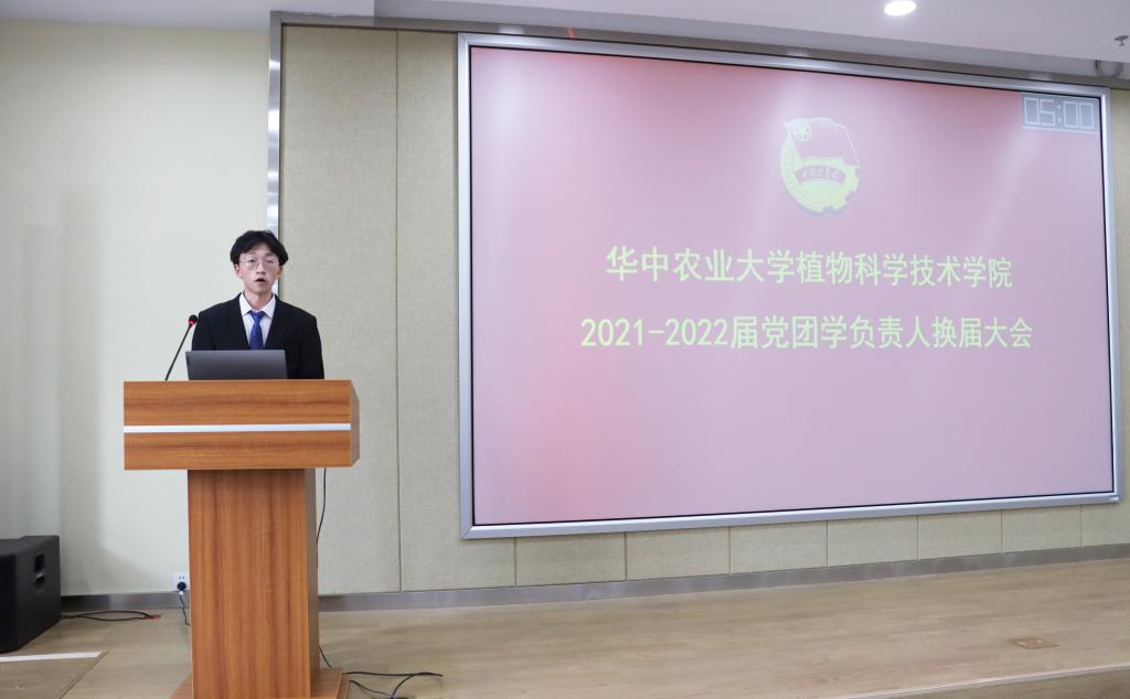 2021-2022学年党团学组织换届实施方案并宣布演讲顺序。随后发放选票,并介绍投票规则。