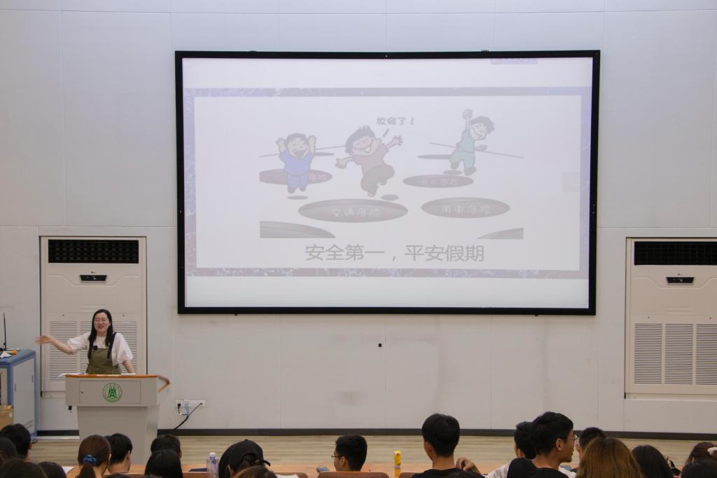 最后,辅导员明淇以“若心有向往,何惧道阻且长”鼓励2019级植科生积极备考本学期期末考试,圆满完成本次暑假社会实践活动,奋力拼搏大学时期的每一天。她对当下大学生热议的“内卷”一词提出自己的看法,认为这恰恰表明了社会的进步与发展,社会整体文化水平和发展水平在提高,在这样的情况下,国家更加需要人才,所以“学历越来越不值钱”是个假命题。明淇通过身边的例子,告诉大家现在的生活较之以前,要面对的压力和要付出的努力都在增加,但与此同时,很小的一点提升便能够超越许多人。她期待同学们在面对压力时能够不抱怨,尽自己所能做到极致。大会最后,明淇就期末考风考纪、暑期安全、防范电信诈骗等主题做了相关提醒,希望大家能度过一个安全愉快的假期。