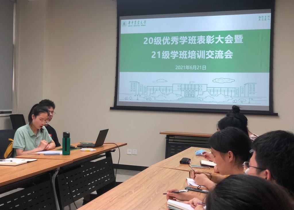 20级优秀学班表彰大会暨21级学班培训交流会于三综C402顺利举行。会议由21级本科生辅导员李纵擎主持。