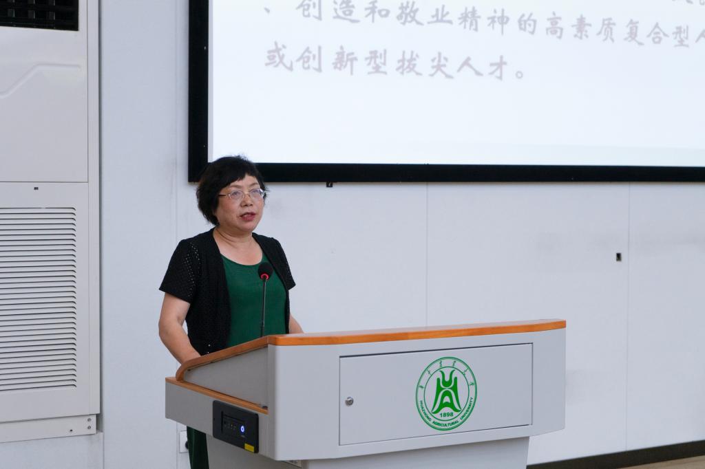 胡立勇从毕业实习定义出发,向同学们明确了毕业实习的基本要义。她谈到,毕业实习是让大家获得独立工作能力并进一步掌握专业技术的实践教学形式,是实现专业培养目标的重要环节。之后,胡立勇从农学专业培养目标、毕业要求两个维度为同学们讲解了学院“以学生发展为中心”的培养理念,并重点介绍了毕业实习的目的以及实习对综合素质培养的作用。她强调,毕业实习培养的是各方面的综合能力,同学们要学会在实习过程中解决问题、找到缺点、补齐短板,注重综合素质的提升。最后,胡立勇老师对同学们提出了期望,她表示,希望同学们可以通过本次毕业实习,进一步传承华农精神,践行“勤读力耕,立己达人”的华农校训。