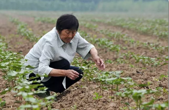 天气旱,李文英却并不担心,因为地里种的棉花是抗旱品种;到地里看看,指导农民养护棉苗,是多年来养成的习惯,改不了。