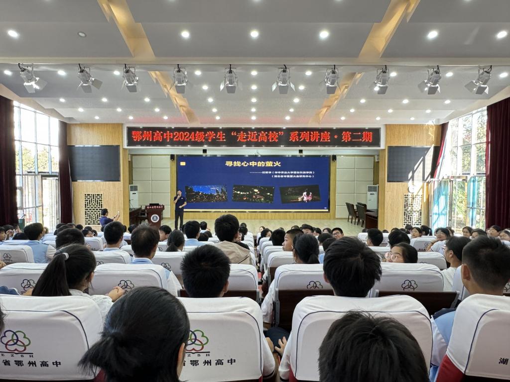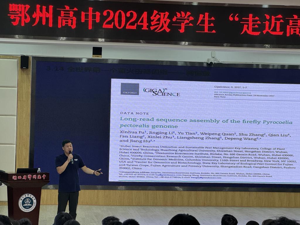 9月22日,我院赴鄂州高中开展“华农教授进名校”活动,付新华教授给200余名师生带来题为“寻找心中的萤火”的科普报告。