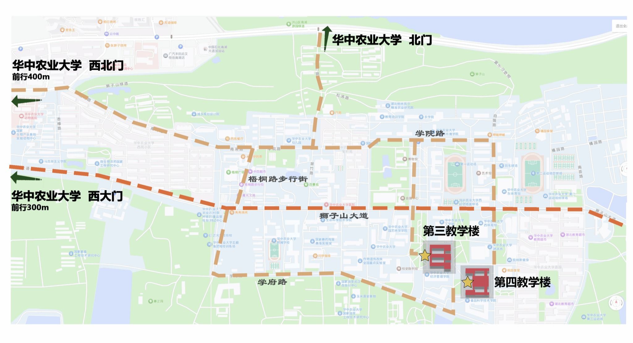 考生凭准考证、身份证和学院复试通知入校,西大门可步行、自驾、打车进出。北门、西北门仅限步行通行。