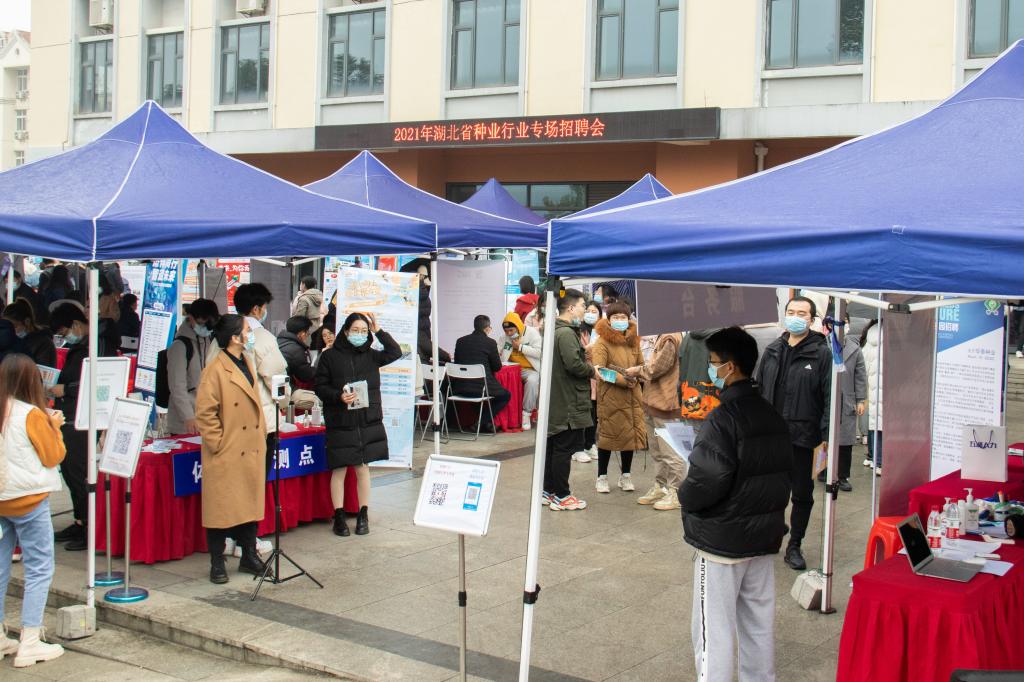 联合学校本科生就业指导中心、继续教育学院举办的“2021年湖北省种业行业专场招聘会”在学生综合服务楼广场顺利举行。