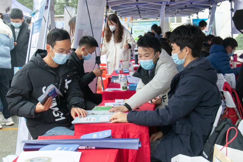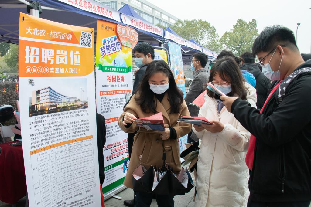 本次招聘会参会单位包括湖北楚创高科农业有限公司、湖北鄂科华泰种业股份有限公司、武汉亚非种业有限公司等54家国内种业龙头企业。现场,同学们根据自己的就业意向,观看招聘信息,咨询就业问题,上海派森诺生物科技有限公司负责人指出:“招聘简章并不是完整的,需要求职者主动去了解信息,这同时也是一种锻炼。”