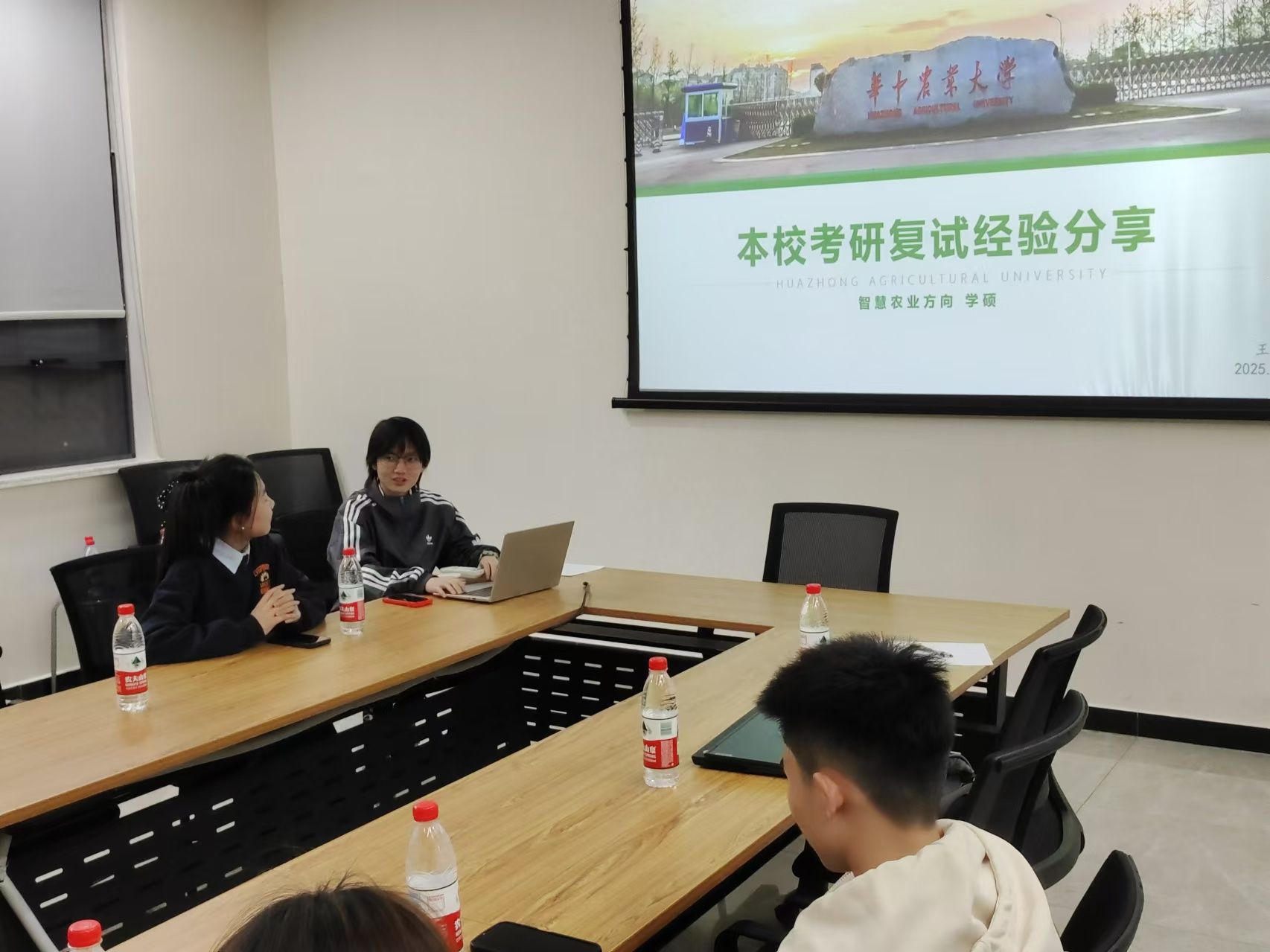 在第三综合楼C302举办考研复试经验分享会。本次活动由徐云超主持,特邀李永辉、王笑一两位学姐分享复试实战经验。