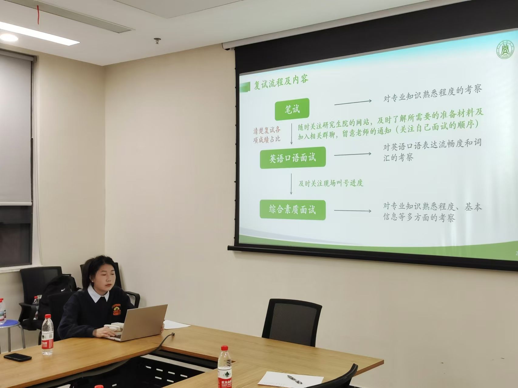 在提问环节,现场同学们踊跃发言,就复试过程中可能遇到的难题与两位学姐进行了深入交流。学姐们耐心解答,提供了许多实用建议,让在场考生受益匪浅。