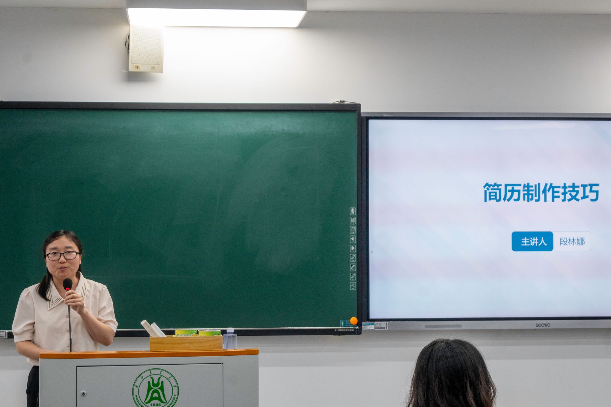 培训伊始,段林娜以"五维分析法"为框架,系统拆解了简历制作的关键要素。她通过展示三份典型问题简历的修改案例,采用对比式教学法引导学员自主发现优化空间。"简历配色需符合行业特性,表格模板易显呆板"等实操建议,引发了现场学生的强烈共鸣。