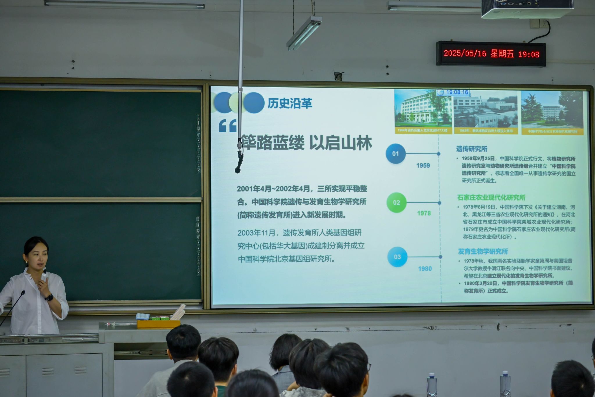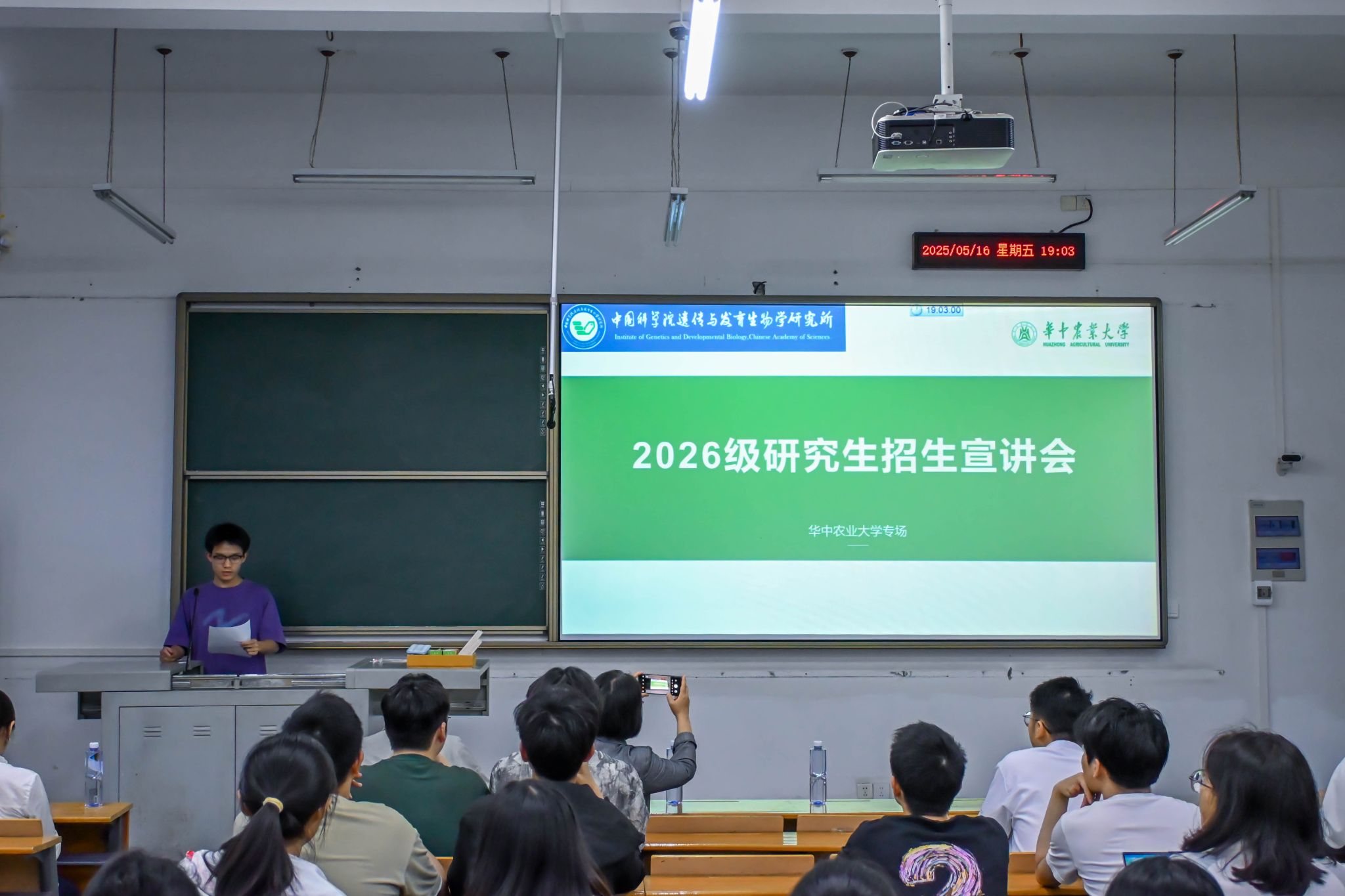 5月16日晚,中国科学院遗传与发育生物学研究所2026 级研究生招生宣讲会于四教C111成功举办,活动吸引了我院、生科院和动科动医学院等学院80余名本研学生积极参与。