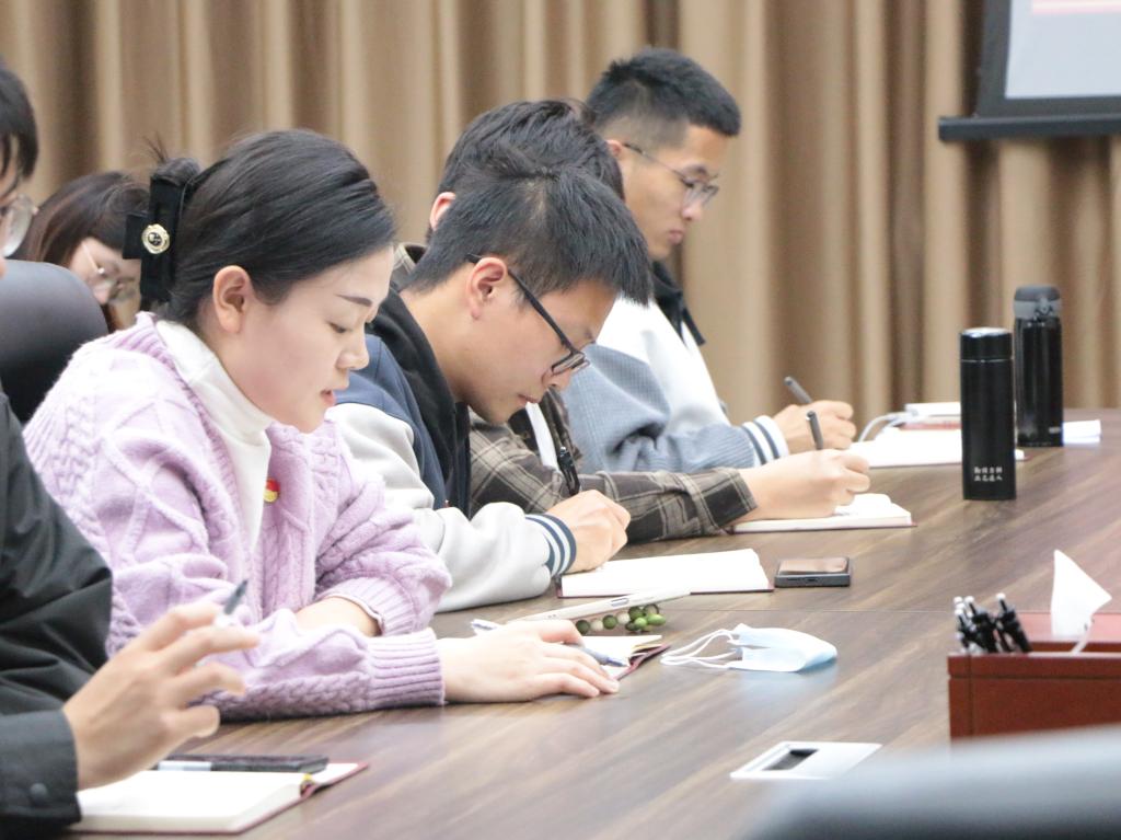 最后,学院党委副书记孙超老师从规范性、重要性、示范性和纪律性四个方面对学院党建工作提出要求。他提到党支部换届、“三会一课”的开展要有规范性;党员发展材料的审查具有重要性;支部书记带头学习要有示范性;疫情重防控、网络不传谣要有纪律性。