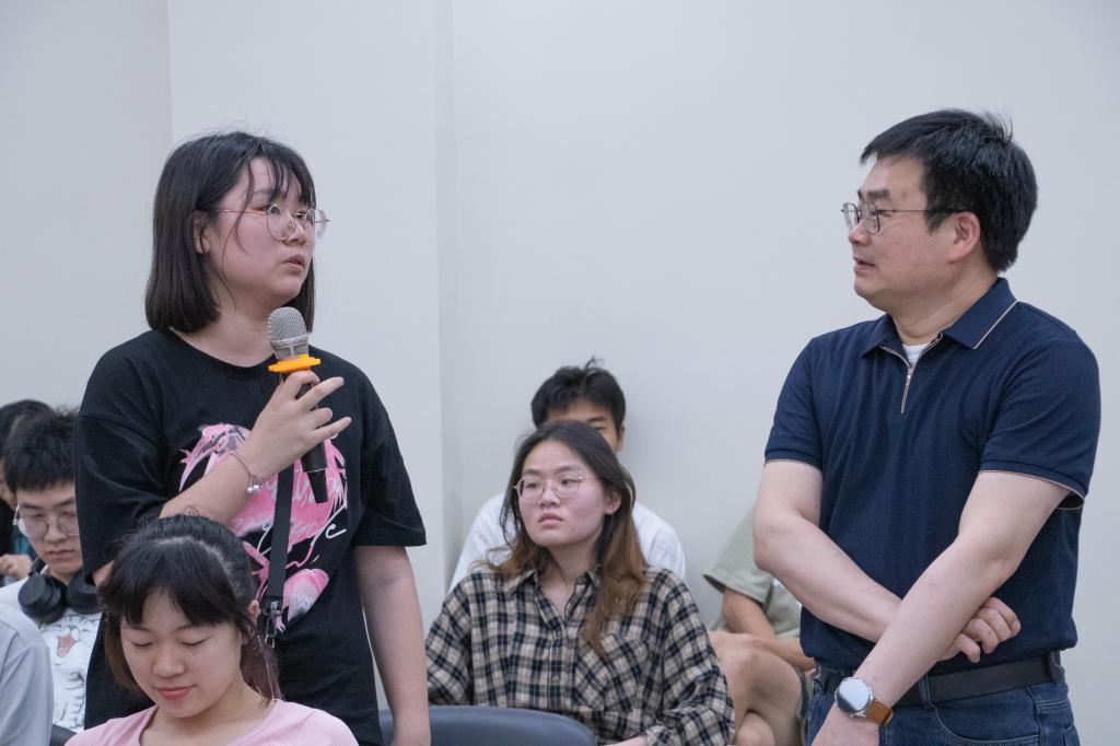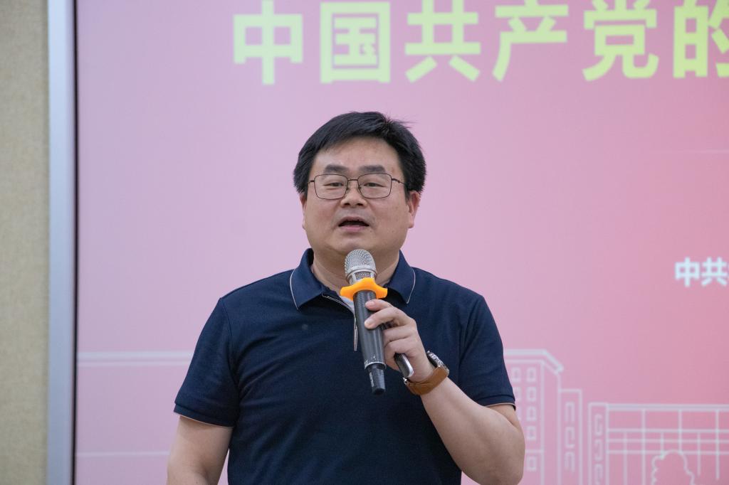 随后,周雄介绍了政党的基本概念并讲述其根本问题:党是什么,要干什么,干成了什么?他从中国共产党的成就、性质、理想和宗旨等方面展开分享。在谈及为什么要加入中国共产党时,周雄以钱学森的入党申请书为例:“我回国近三年来受到的关于党的教育,使我体会到了党的伟大。我愿为实现共产主义社会这一伟大目标奋斗并忠诚于党的事业。”以先辈们的事迹为例,证明了加入中国共产党是自觉理性的选择,是持续坚定的选择,是正确必然的选择。