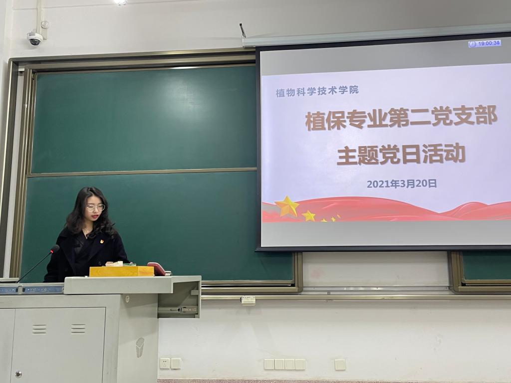 3月20日晚,植保第二党支部于四教C211开展“学党史、悟思想、办实事、开新局”专题理论学习活动。植保第二党支部副书记许承慧主持本次活动。