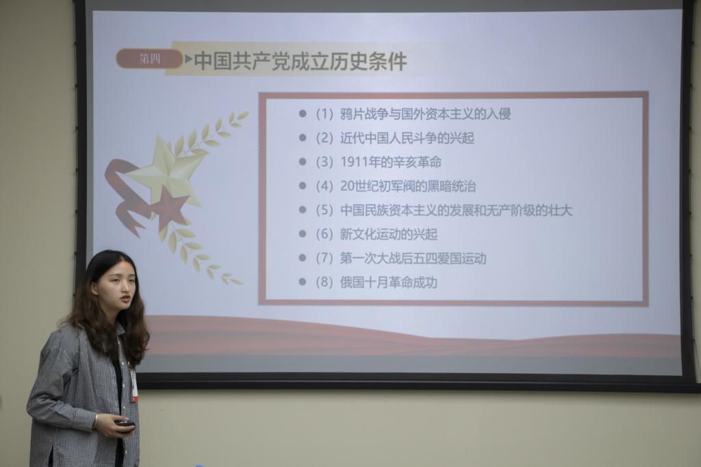 来自农学第一党支部的黄宝莹向大家讲述了党的三个历史发展时期:新民主主义革命时期、社会主义革命和建设时期、改革开放和社会主义建设时期。她分享道:“由于各个时期的现实情况,这三个时期党带领全国人民走的路不尽相同,但是拼接起来就是一条通向实现共产主义的完整道路,是一条实现中华民族伟大复兴的光明大道。”农学第二党支部梁诚用以时间为轴,介绍了党的发展历史。“跟随党的正确脚步,苦尽甘来,”农学专业第一党支部王金玉,通过分享近日中美高层战略对话的例子向大家展现了在党的正确领导下,中国正在不断强大。