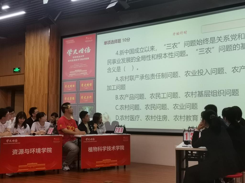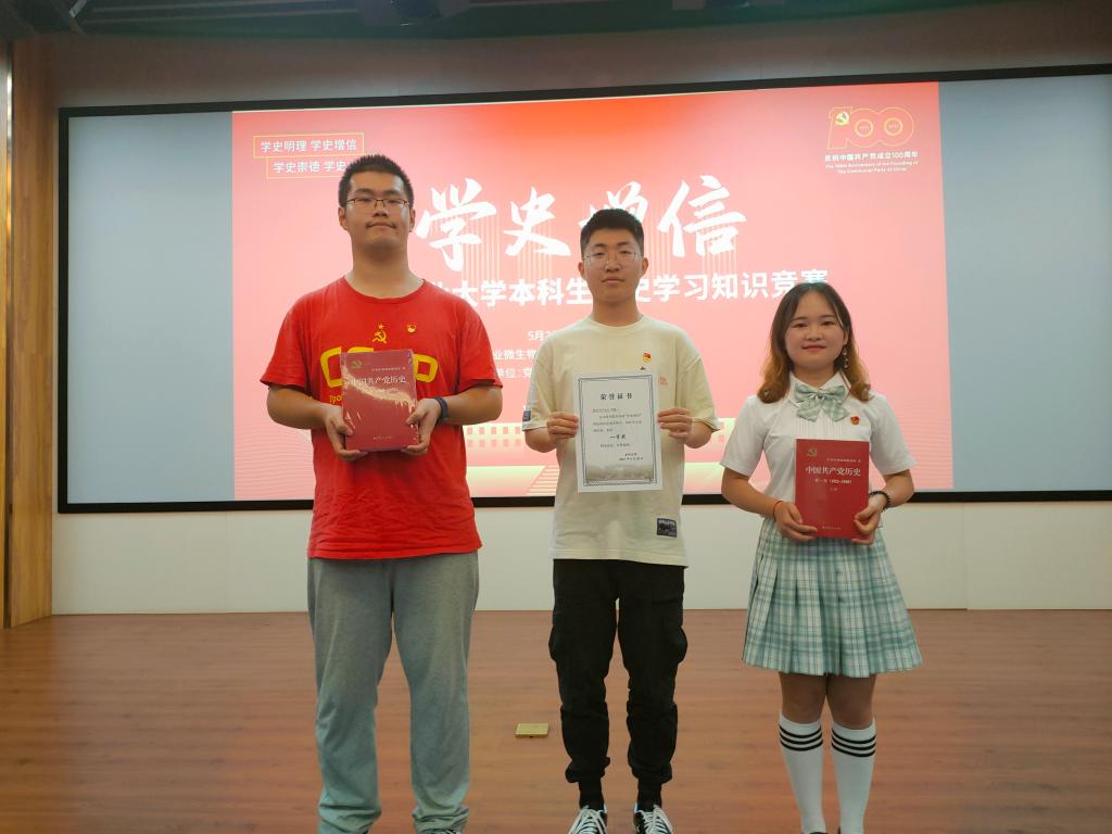 “学史增信”本科生党史学习知识竞赛决赛在农业微生物学国家重点实验室生3报告厅举行,我院党员李俊达、梁诚用、唐瑶三位同志代表学院参赛。最终,三位党员奋勇拼搏,在激烈的角逐中脱颖而出,获得第一名。