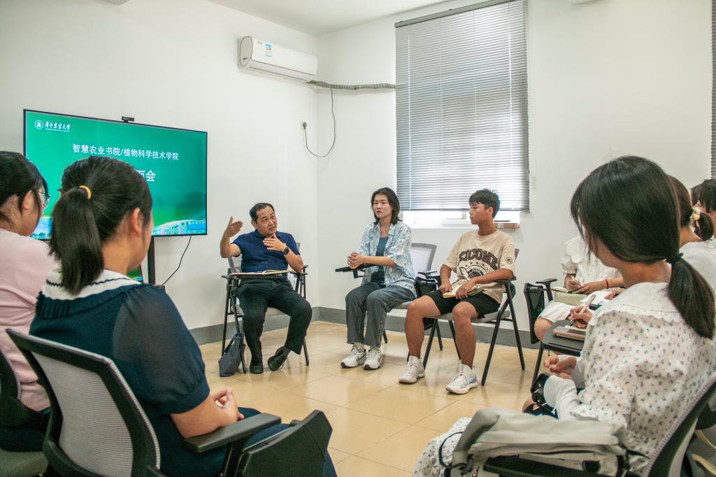 院长朱龙付教授、20余位新生代表相约智慧农业书院活动室交流。