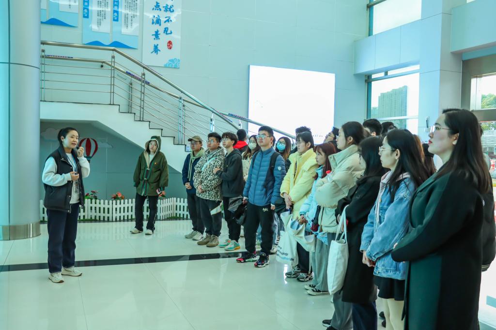 来到产品展示区,琳琅满目的各式乳制品让参观的同学们连连发出惊叹。黄冈伊利的产品涵盖了冰激凌、常温牛奶、奶粉和奶制品等。跟随着讲解员的说明,同学们详细了解了伊利旗下的各个子品牌,也对乳制品行业产生了浓厚的兴趣。走过展示区后来到的生产车间参观区域,更是牢牢吸引了同学们的目光。“这里是凝冻区,冰激凌在流水线上被送入这里之后会快速地冷冻……”同学们不时提出问题,讲解员逐一从专业角度进行了回答。活动最后,同学们在伊心阁品尝了生产的冰激凌和酸奶,并就所关心的企业工作、人才培养等方面的问题与企业工作人员进行了沟通交流。