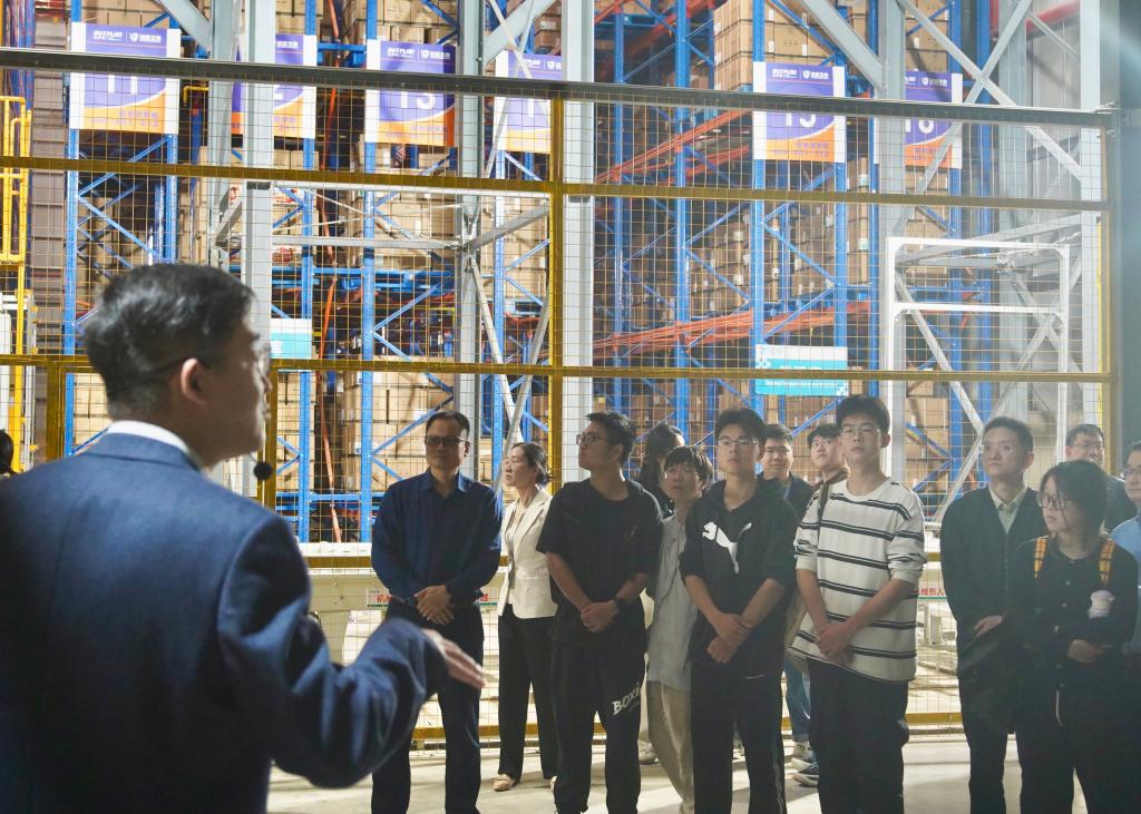 “高架无人仓储系统中的货架通过算法来分配货物,集成WMS、ERP等系统进行管理和决策,配备码垛机械手、自动堆垛机等各类输送设备,分设阴凉库和常温库以保证药品质量”在智能立体仓库,回盛生物工作人员向大家全面介绍了园区自动化立体仓库的运行原理和核心技术。“作为一家致力于动保科技的企业,这里不仅有着先进的生产线,还有着严谨的研发流程和严格的质量监控体系。”在智农2301班李兆铭看来,回盛公司的每一道工序都透露出对生命的尊重和对品质的坚守。“我们要时刻保持敬畏之心,尊重生命,关注细节,不断创新,追求卓越。”
