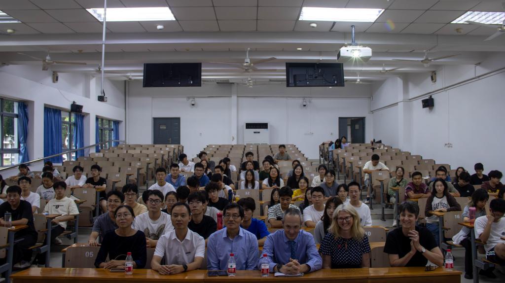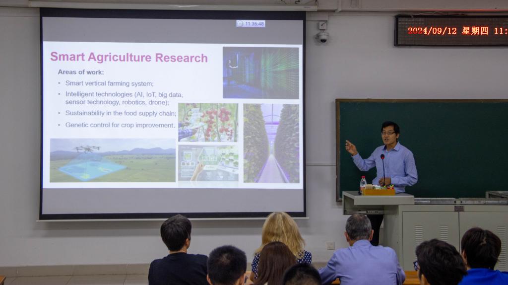 与诺丁汉特伦特大学联合教学3+1 教学与研究型硕士智慧农业课程 (MSc/MRes)与同学们展开交流。他详细介绍了联合课程设置与机制保障。“学校的教学设计曾被BBC报道,且与英国多家企业有合作”,他表示,这为学生未来的职业选择提供了便利。
