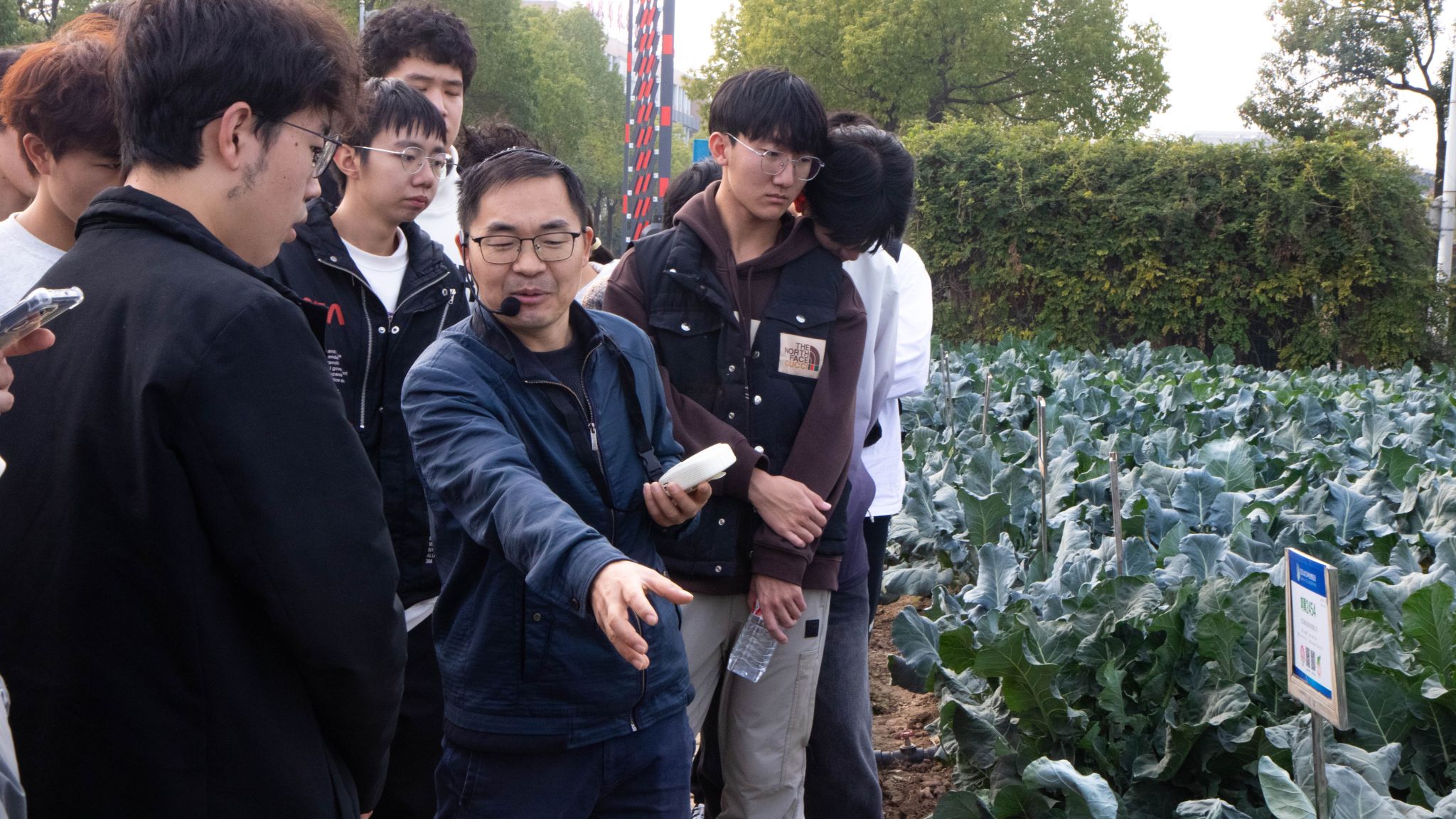 11月23日,园艺林学学院副教授、书院智慧园艺方向教师黄远带领60余名书院本科生走进武汉市农业科学院蔬菜研究所,在专业知识与应用场景呼应的过程中感受现代农业发展。