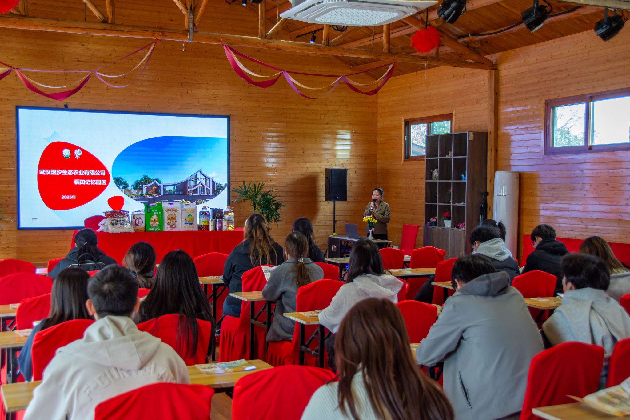 座谈交流环节,农场讲解员详细介绍了"稻田记忆"品牌的定位和目标。“我们农场以农村自然风光休闲游为基础,将农业与文化旅游相结合,打造一个品牌‘稻田记忆’、塑造五大产品、形成六大分区,致力于以科技兴农为方向,打造全面发展农文旅一体化的科技园区。”“农耕文化是千百年来中国乡村的深刻印记,农场位于作为农业大区的新洲区,需要综合利用生态农业资源,以农业种植为核心,提供健康的农产品生产体验、农旅劳动教育等综合文旅元素,让游客亲身体验农耕文化。”农场负责人向同学们分享道。同学们就农场规划建议等问题踊跃提问,现场气氛热烈。