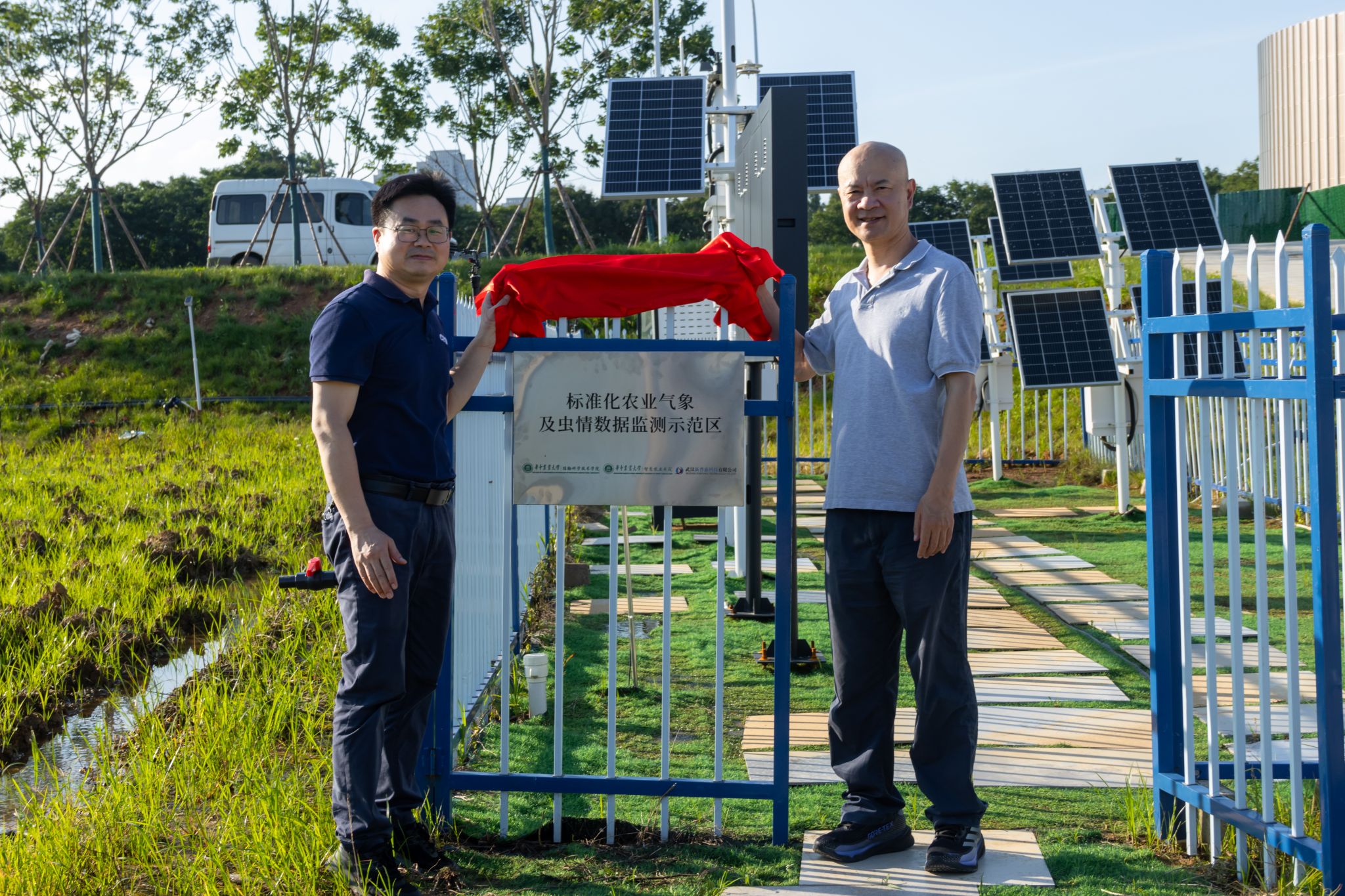 座谈会后,周雄为“标准化农业气象及虫情数据监测示范区”揭牌。