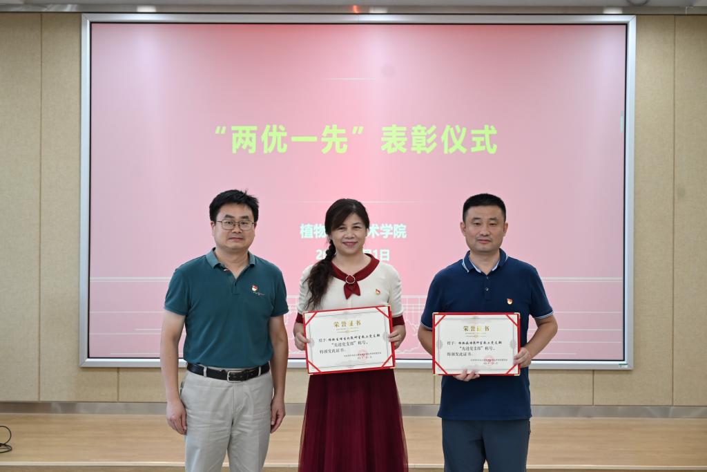 座谈会上,党委书记周雄、离退休教师党员李合生、张国安等向学院2022年教工优秀共产党员、教工优秀党务工作者、教工先进党支部颁发荣誉证书。