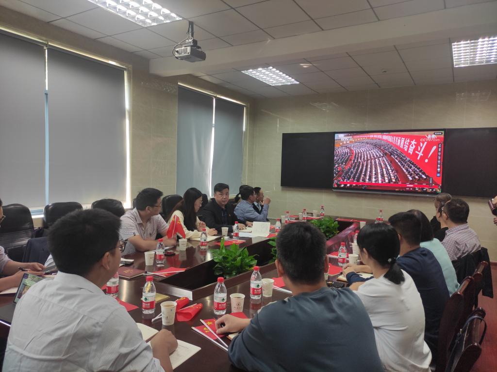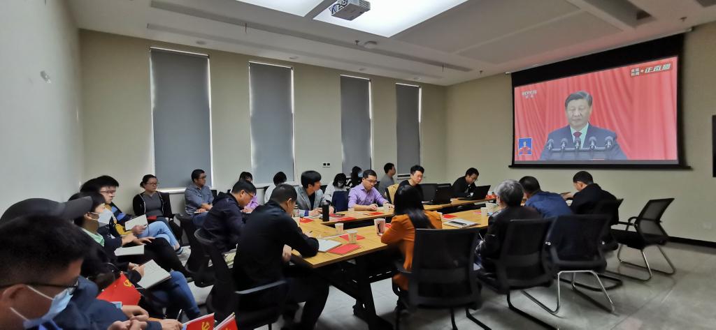 学院教工、学生和离退休党支部师生通过线上线下在9个会场同步收看大会直播,校党委副书记、副校长姚江林在三综A705主会场和师生代表一同观看了开幕式。
