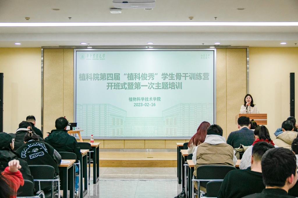 2月16日下午,第四届植科俊秀训练营开班仪式暨第一期培训在三综A705举行。图书馆党总支书记、文化办副主任冯楠、研究生辅导员任伟、20级本科生辅导员练人杰,本科生、研究生150余名学生骨干参加本次活动。21级本科生辅导员李纵擎主持会议。