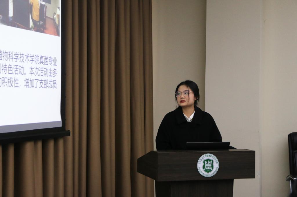 真菌研究生党支部书记周思维就支部工作进行分享交流,她强调:“要做好科研活动与支部生活的相对平衡,开展主题党日学习的形式要多样化。活动开展的范围尽量广泛,而不只是拘泥于本支部,这样不仅能加强支部间的交流,同时缓解支部内同志的压力。可以具体体现在支部联学、相关影视作品的观看和相关书籍的共读、相关纪念馆的实地学习等。”