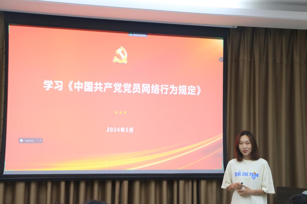 植物保护专业第一党支部书记徐怀钰带领大家从整体、细则和组织这三个层面对《中国共产党党员网络行为规定》的内容展开学习。他谈到:“党员同志应当严守政治纪律,规范网络言行。务必做到‘八个’应当、‘一个’鼓励和‘九个’不得,自觉在思想上政治上行动上同以习近平同志为核心的党中央保持一致。”