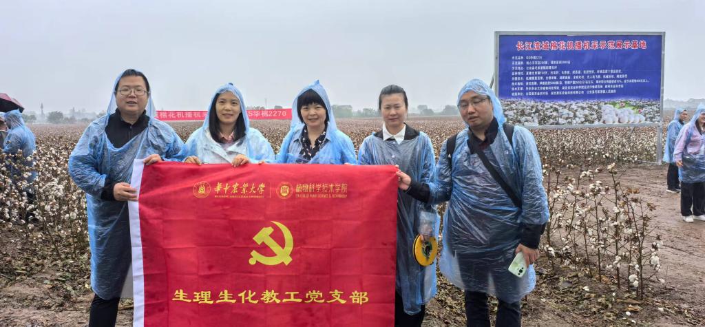 10月13日,学院生理生化教研室教工党支部和行政教工党支部联合前往洪湖市春露合作社再生稻基地、公安县毛家港镇新曙光村200亩全程机械化棉花生产示范基地开展“党旗田野”。
