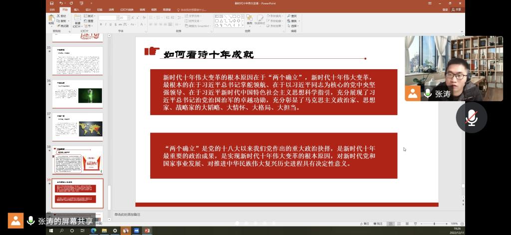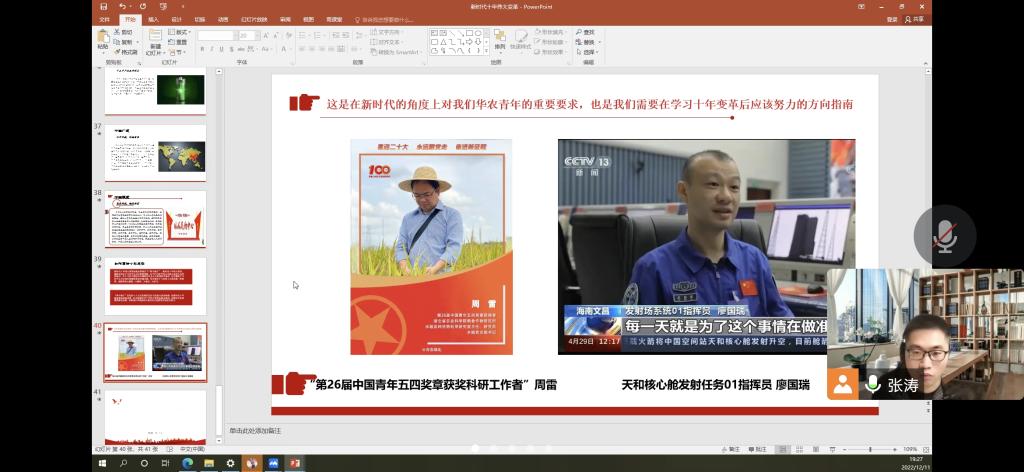 为推动学生深入学习党的二十大精神,12月11日,植物科学技术学院辅导员张涛召开线上交流分享会,植物生产类2204班全体同学参会。