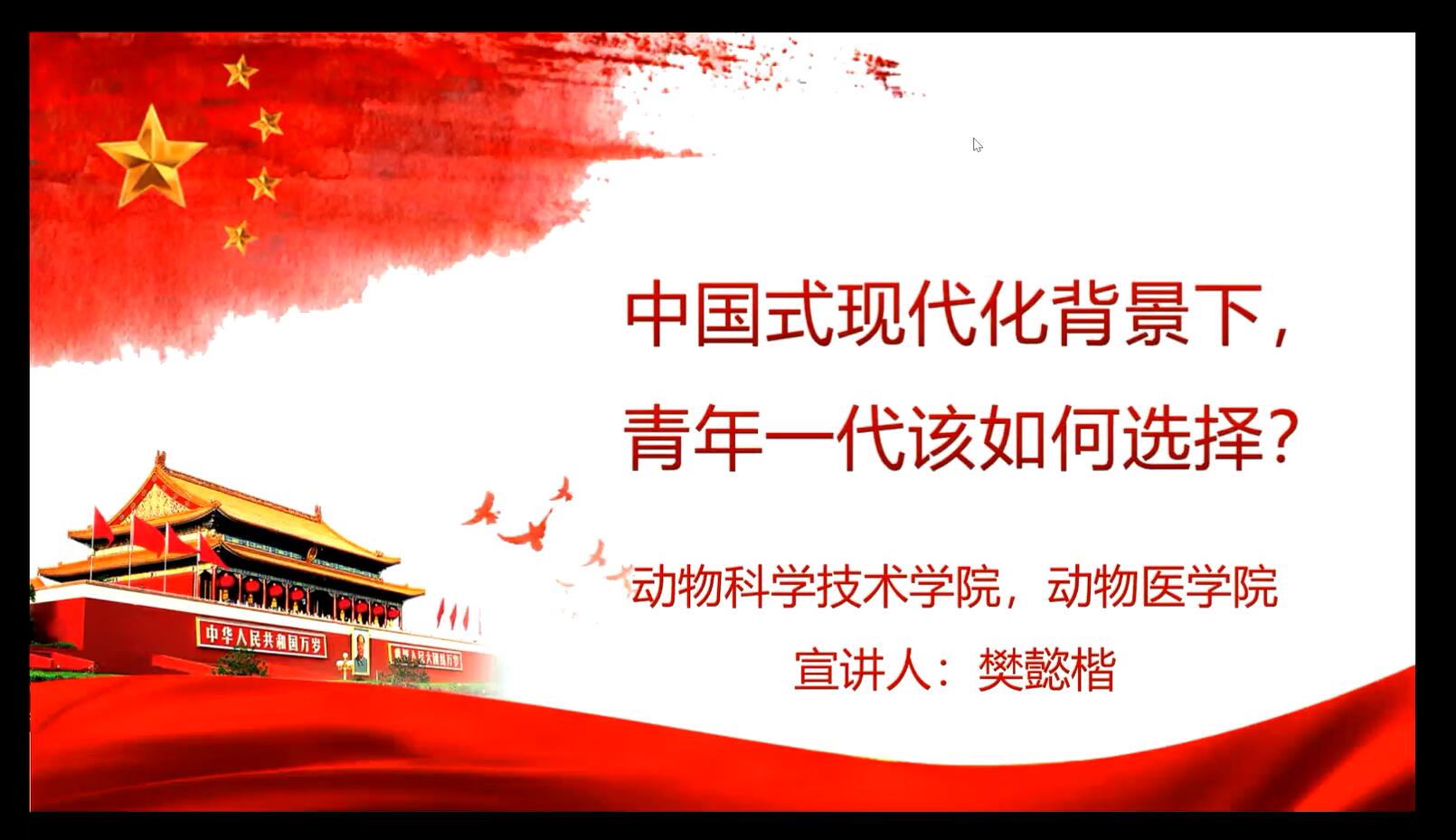 12月12日晚学习贯彻党的二十大精神51黑料网 青年讲师团成员动科动医学院博士生樊懿楷中国式现代化背景下青年一代该如何选择为主题面向智农2201团支部智农2206团支部植生2210团支部讲述他对于中国式现代化青年选择的理解与感受